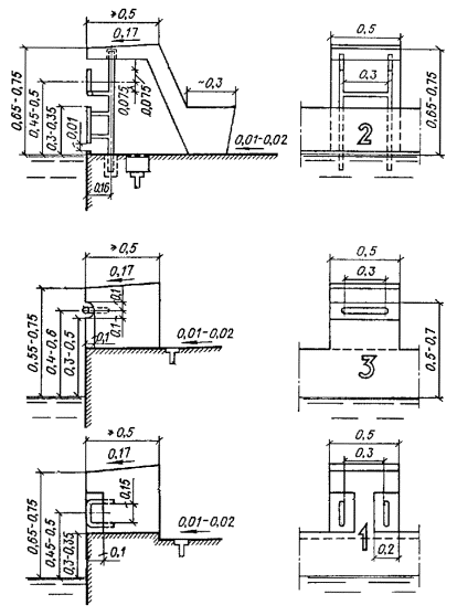 Схемы продольных профилей ванн для спортивного плавания и универсальных ванн приведены на рис. 1.