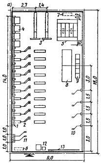 При проектировании осветительной установки, обеспечивающей уровни освещенности, требующиеся для проведения цветных телепередач, необходимо из общего числа светильников выделять приборы, обеспечивающие нормируемые уровни освещенности, предусмотренные в табл. 14. Эти приборы должны управляться отдельно от остальных приборов осветительной установки.