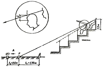 Осевые лучи приборов, освещающих зеркало воды, не должны попадать на трибуны.