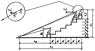 Рис. 3. Схема для определения размеров ванн для прыжков в воду и расстояний между устройствами для прыжков