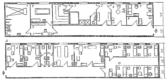 служебных помещений для административного и инженерно-технического персонала, инструкторско-тренерского состава, бытовых помещений для рабочих;
