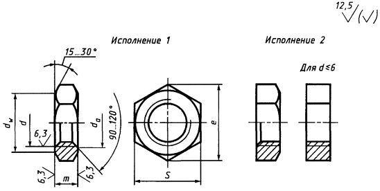 2. Конструкция и размеры гаек должны соответствовать указанным на чертеже и в таблице.