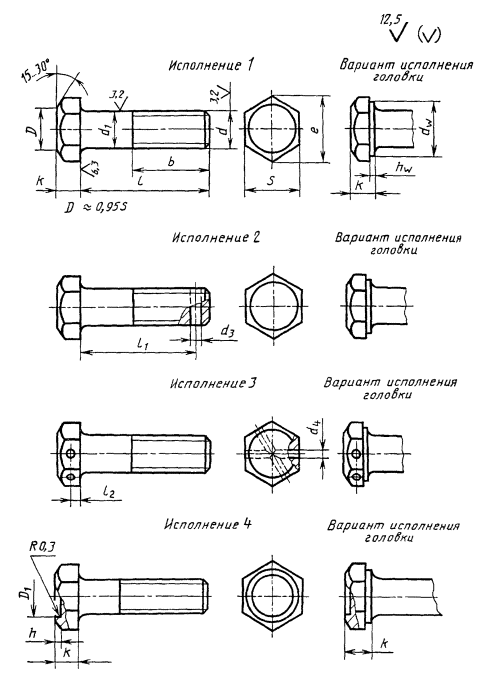 3. Резьба - по ГОСТ 24705. Сбег и недорез резьбы - по ГОСТ 27148. Концы болтов - по ГОСТ 12414.