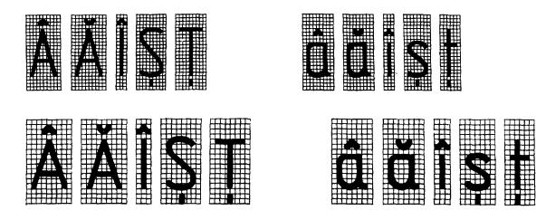 Высота строчных букв с определяется из отношения их высоты (без отростков k) к размеру шрифта h, например, с = 7/10 h (черт. 1 и 2).