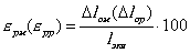 При измерении удлинения по изменению расстояния между зажимами значения удлинения (eрм и eрр) в процентах вычисляют по формуле