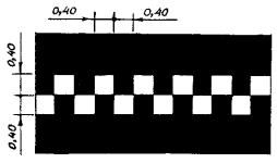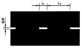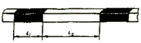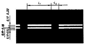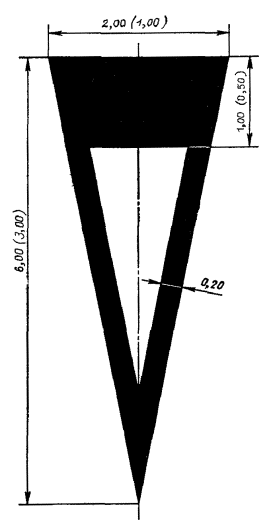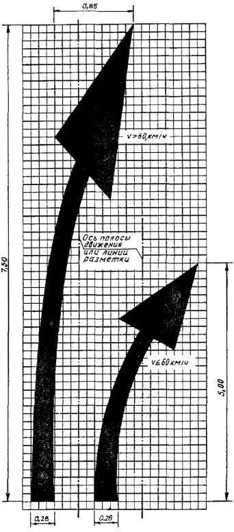 v £ 60 км/ч, l1 = 3,00 - 6,00, l2 = 1,00 - 2,00; v > 60 км/ч, l1 = 6,00 - 9,00, l2 = 2,00 - 3,00. l1:l2 = 3:1 |