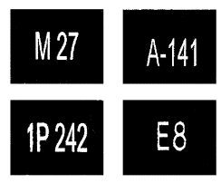 3.2 Установлено две группы разметки горизонтальная и вертикальная. Каждому виду разметки присвоен номер, состоящий из цифр, означающих первое число - номер группы, к которой принадлежит разметка (1 - горизонтальная, 2 - вертикальная), второе - порядковый номер разметки в группе, третье - разновидность разметки.