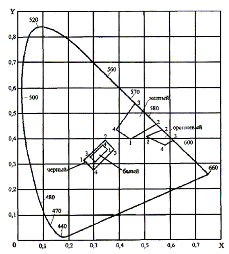 Рисунок B.1 График цветовых областей для дорожной разметки (МКО, 1931)