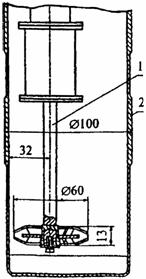 Смеситель лопастной со скоростью вращения лопастного устройства (1500 ± 100) об/мин; объем перемешиваемого раствора в стакане цилиндрической формы от 500 до 900 см3. Схема смесителя приведена на рисунке 1. Допускается применение смесителей иной конструкции, обеспечивающих получение однородного цементного теста при времени перемешивания (180 ± 5) с и идентичности результатов испытаний.