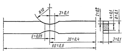 1.7. Для образцов по черт. 1 - 3 неплоскостность всех поверхностей и непараллельность противолежащих поверхностей рабочей части не должна превышать 0,05 мм на длине 60 мм.