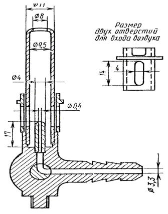 2.3.1. Перед испытанием проверяют пригодность горелки (горелок). Горелки ставят на горизонтальную поверхность камеры так, чтобы сопло было направлено вертикально вверх. Затем регулируют пламя горелки.