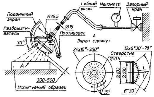 19) испытательное устройство для испытаний IРХ3 и IРХ4 [качающаяся труба или разбрызгиватель (см. 14.2.3 и 14.2.4)];