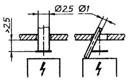 2) Ограждения, форма отверстий или любые другие средства (относятся ли они к оболочке либо образованы оборудованием внутри оболочки), предназначенные для предотвращения или ограничения доступа специальных испытательных приспособлений, рассматриваются как часть оболочки, исключая случаи, когда их снимают без помощи ключа или другого инструмента.