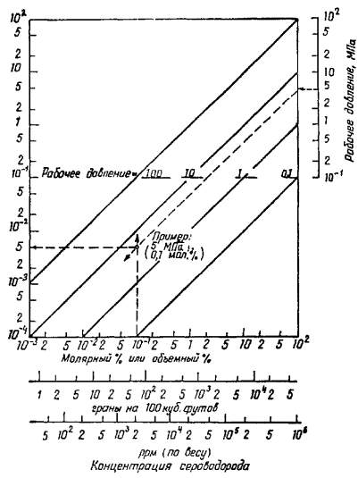 б) рабочий должен пользоваться специальным защитным шлемом, под который подается свежий воздух. Без специального защитного шлема разрешается работать только в том случае, если применена принудительная вентиляция, при которой загрязненность воздуха вредными газами внутри трубопровода не превышает предельно допустимых концентраций (в мг/м3):