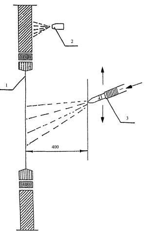 1 - образец; 2 - форсунка верхнего неподвижного ряда; 3 - подвижная форсунка