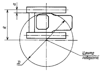 4.4 Радиус поворота гусеничного трактора и бульдозера следует определять на глинистой укатанной горизонтальной площадке с плотностью, соответствующей 5-12 ударам плотномера ДорНИИ. При этом высота неровностей в пределах габаритов трактора и машины не должна быть более 20 мм, а угол уклона площадки не должен быть более 2°. Наименьший радиус поворота гусеничного трактора и бульдозера, расстояние от центра поворота до осевой линии забегающей гусеницы следует определять по следу забегающей гусеницы в соответствии с приложением Б при движении на минимальной скорости и при положении органов управления, обеспечивающих наиболее крутой поворот.
