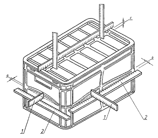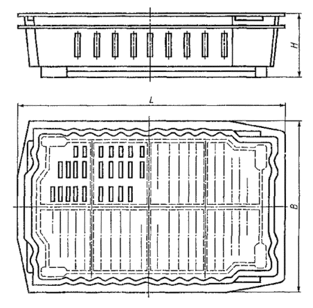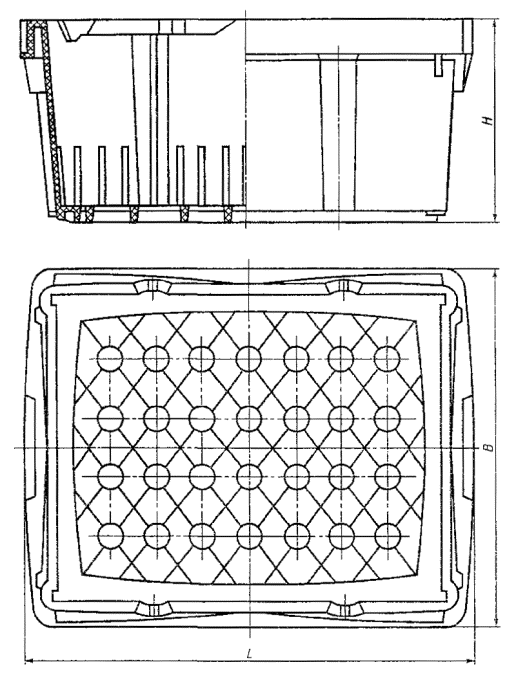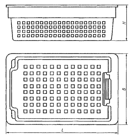 Края ящиков и крышек должны быть ровными, без технологических дефектов и механических повреждений. Следы от литников и толкателей формы не должны иметь острых (режущих, колющих) краев. Не допускается выступание литника над опорной поверхностью ящика.