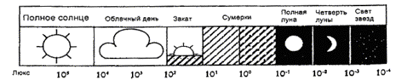 Диапазон уровней освещения, соответствующий данной классификации, приведен на рисунке 1.