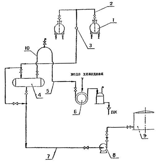 Схема налива сжиженных углеводородных газов без компрессорной установки