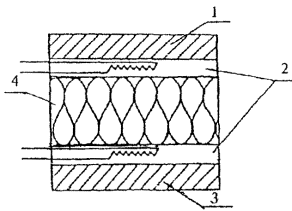 1 - нагреватель; 2 - тепломер; 3 - испытываемый образец; 4 - холодильник
