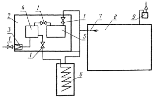 устройством для отбора проб среды, нейтрализации и удаления среды по окончании испытаний;