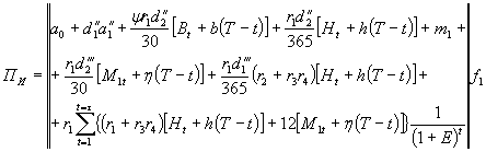 где Сt - ежегодные затраты на текущий ремонт и содержание дороги в t-м году; Ccpt - затраты на средний ремонт дороги, отнесенные к одному году межремонтного срока службы; At -автотранспортные затраты в t-м году; Пt - потери народного хозяйства от дорожно-транспортных происшествий в t-м году; ΔЭПАССt - экономический эффект, вызванный сокращением пребывания пассажиров в пути после реконструкции дороги в t-м году; Fз - потери народного хозяйства из-за изъятия земель из сельскохозяйственного производства.