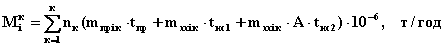 Максимально разовый выброс i-ro вещества определяется по формуле: