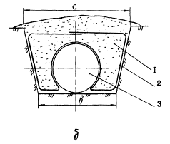 5.8. Балластировка трубопроводов грунтом с применением НСМ производится полотнищами длиной 10-15 м, приготовленными в стационарных условиях. Для создания оплошного ковра в продольном направлении над трубопроводом допускается перекрытие одного полотнища другим внахлест (не менее 0,5 м) без сваривания. При балластировке по схеме рис. 3, б края полотнища следует соединять сваркой или сшивать проволокой с шагом не менее 0,5 м.