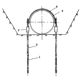 5.9. Закрепление трубопровода винтовыми, раскрывающимися и вмораживаемыми анкерными устройствами должно осуществляться при нахождении его в траншее на проектных отметках.