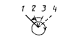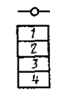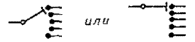 4. Переключатель однополюсный, многопозиционный с подвижным контактом, замыкающим три цепи, исключая одну промежуточную |