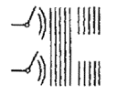 5. Соединитель координатный многократный с n вертикалями и с m выходами в каждой вертикали Примечание. Допускается упрощенное обозначение: n - число вертикали, m - число выходов в каждой вертикали |