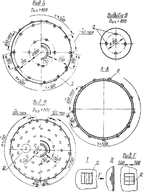 в) на днищах и крышках - в соответствии с черт. 3, 5 и 6 (на конических днищах и крышках по примеру черт. 3 и 5);