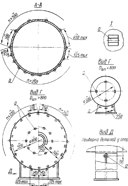 г) на опорах аппаратов с шагом 500 мм - в соответствии с черт. 1, 2, 4 и 5.