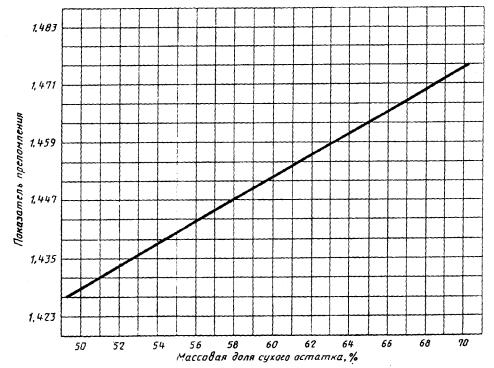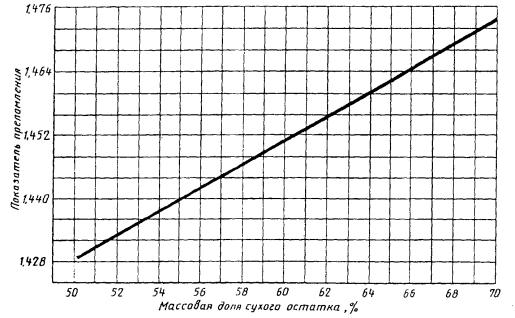 Графическая зависимость массовой доли сухого остатка смолы от показателя преломления приведена в приложении 3, при этом погрешность составляет ±1 %.