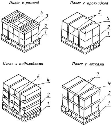 В качестве средств пакетирования используют плоские поддоны по ГОСТ 9078-84, ГОСТ 26381-84, специализированные поддоны, подкладки, бруски и другие средства пакетирования по нормативно-технической документации, утвержденной в установленном порядке.