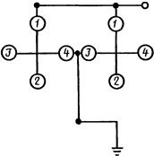 Все жилы 1 и 2, соединенные вместе, против всех жил 3 и 4, соединенных вместе
