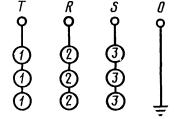 Схемы испытания трехфазным напряжением электрической изоляции кабельных изделий без экранированных жил