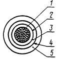 1 - все жилы кабельного изделия; 2 - общая металлическая оболочка (экран); 3 - внутренние защитные покровы; 4 - броня; 5 - наружные защитные покровы