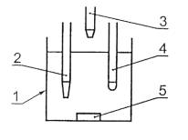 4.15. При испытании в солевой ванне (п. 2.14), содержащей 0,5 %-ный водный раствор хлористого натрия, образец кабеля должен быть погружен на дно ванны, как показано на черт. 4. Концы кабеля длиной не менее 300 мм должны находиться над поверхностью солевого раствора, глубина которого не менее 500 мм, а испытуемая длина образца должна быть полностью погружена в солевой раствор. Между солевым раствором и броней (в покровах типов БбШв; КбШв; БбШп) или металлической оболочкой должно быть приложено напряжение 10 В постоянного тока. Отрицательный полюс источника тока должен быть присоединен к металлической оболочке или броне.