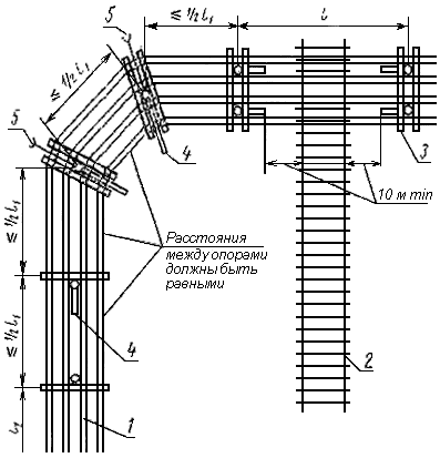 10. Места пересечений ЛС и ПВ с электрифицированными железными дорогами должны отстоять не менее чем на 10 м от стрелок, крестовин и мест присоединения отсасывающих кабелей. При пересечениях трамвайных путей это расстояние может быть уменьшено до 3 м.