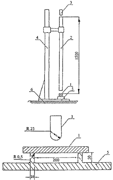 7.17.6 До 01.01.2002 г. допускается контролировать прочность сварных соединений неразрушающим методом по схеме А: при вертикальном расположении образца прикладывают контрольный свободный груз (нагрузка - по 5.3.9, допускаемые отклонения нагрузки - ±5 %, скорость нагружения не регламентируют) на горизонтальную сторону образца (например, вручную на тросе или проволоке). При этом заданное значение нагрузки получают путем последовательного приложения грузов массой не более 25,0 кг. Образцы выдерживают под нагрузкой не менее 3 мин. Результат испытаний признают положительным, если каждый образец выдержал нагрузку без разрушения и образования трещин.