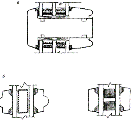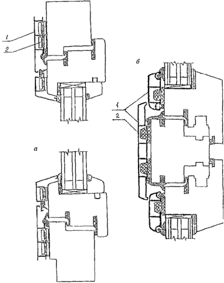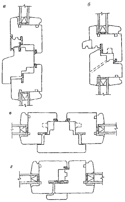 а - горизонтальный импостный притвор; б - горизонтальный безимпостный притвор; в - вертикальный импостный притвор; г - вертикальный безимпостный притвор