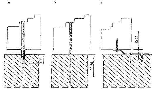 а - узел крепления строительным дюбелем; б - узел крепления монтажным шурупом; в - узел крепления при помощи анкерной пластины