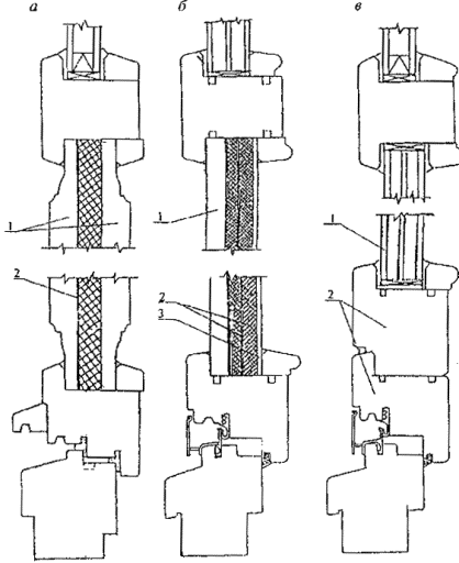 Рисунок А.5 - Примеры конструктивных решений узлов оконных блоков раздельной конструкции с однокамерными стеклопакетами