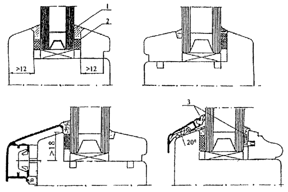 1 - силиконовое уплотнение; 2 - самоклеющаяся эластичная прокладка; 3 - эластичная полимерная прокладка