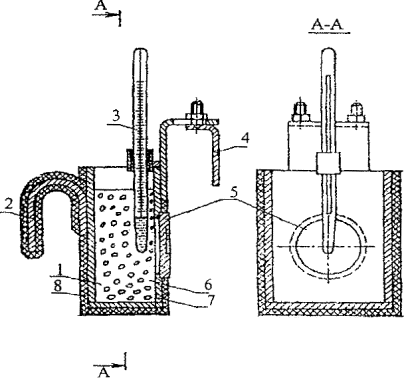 Емкость с вакуумной присоской, заполненная водой. Термометр по ГОСТ 28498 с погрешностью измерения не более 1 °С.
