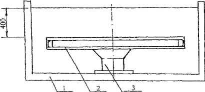 1 - емкость с водой; 2 - образец стеклопакета; 3 - вакуумная присоска