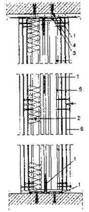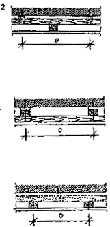 Рисунок 1 - Конструктивные схемы каркасно-обшивных перегородок: с обшивкой из гипсокартонных листов с заполнением воздушной полости звукоизоляционным материалом (а), без заполнения воздушной полости (б) и с заполнением гипсокартонными листами (в)