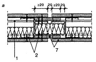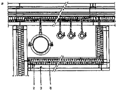 3.4 Подвесные потолки включают металлический или деревянный каркас, подвешенный к несущим конструкциям перекрытия или покрытия (базовому потолку), и подшивку из гипсокартонных листов или заполнение ячеек кассетами, выполненными из этих листов. Для повышения огнестойкости конструкции потолка в надпотолочном пространстве может быть размещен огнезащитный теплоизоляционный материал (рисунок 2).