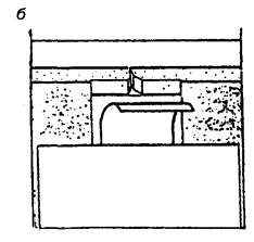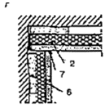 6.9.18 Заделку выступов на стыках гипсокартонных листов (рисунок 49, г) выполняют путем зачистки их (без повреждения ГКЛ и ленты) под уровень с поверхностью ГКЛ (рисунок 49, г1) с последующим нанесением тонкого слоя шпаклевки и разравниванием ее (рисунок 49, г2), а после твердения - с выполнением операций в соответствии с указаниями 6.9.4.